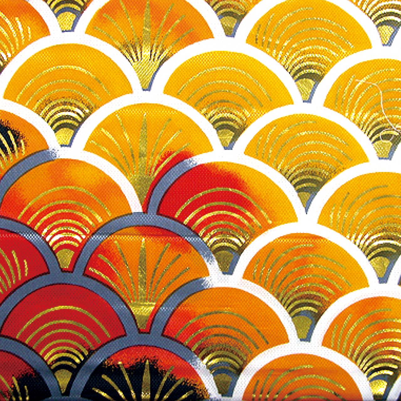 されています。錦鯉独特の色合いを七色ばかしで染めあげた上に、うろこ全体に扇状の金をあしら